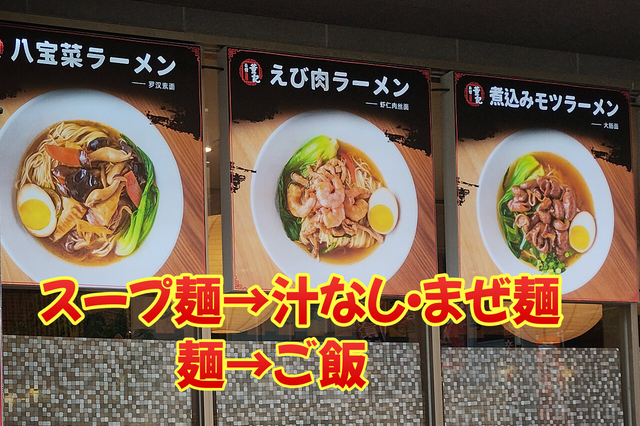 後日調べで、こちらのお店では麺(スープ/汁なし)に各種中華おかずをトッピングしたものをウリにしているようでした。