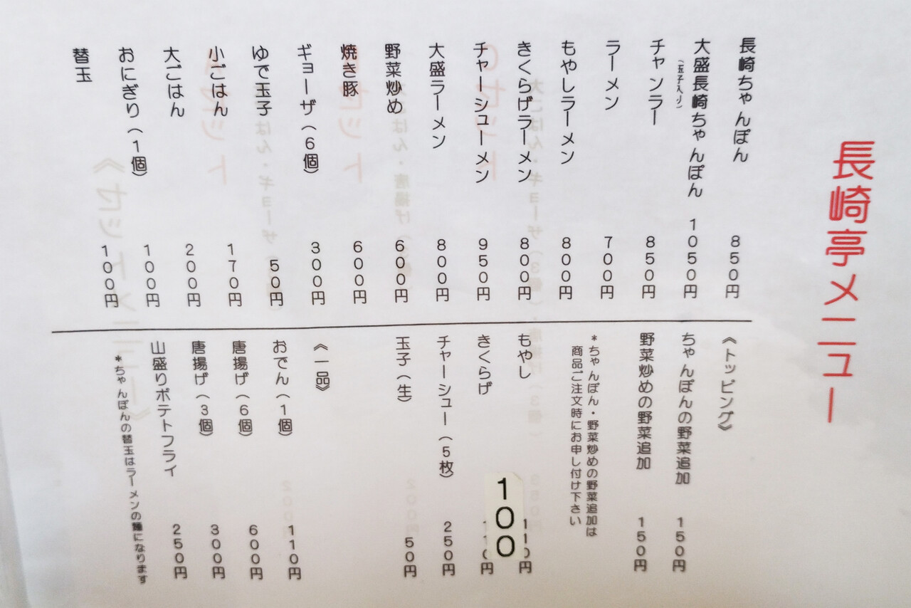 以前は、『長崎ちゃんぽん』850円+『野菜追加』100円をよく頂いていたものですが、