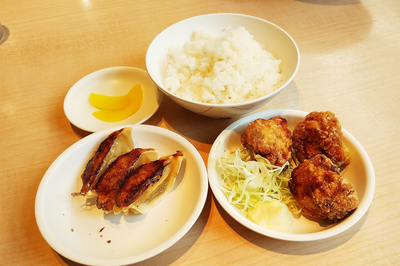 今回は大ご飯に唐揚げ3個と餃子3個の両方が付いた350円の『Cセット』を頂きました。