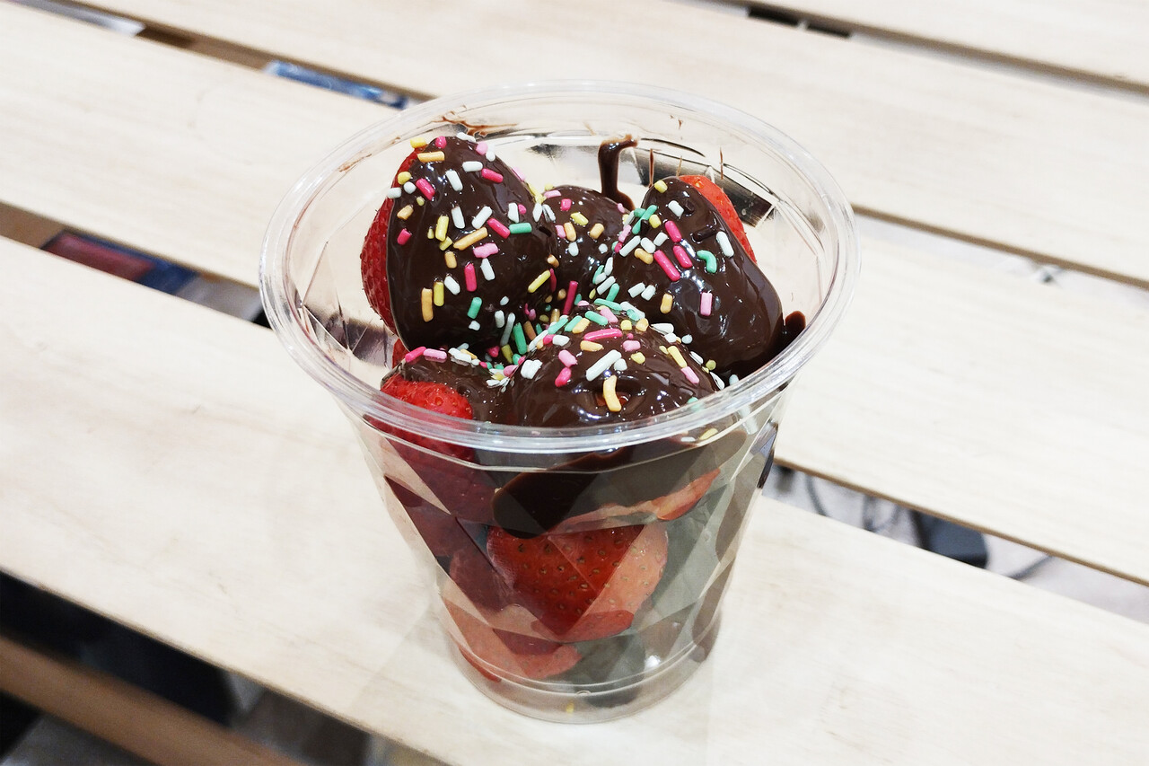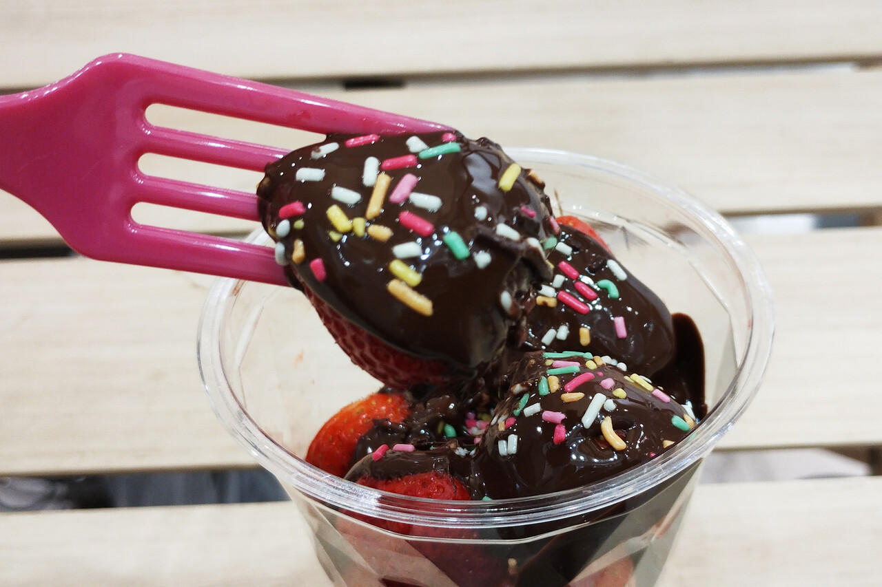作り置きではなく、注文後にイチゴにとろとろチョコをかけてくれます。