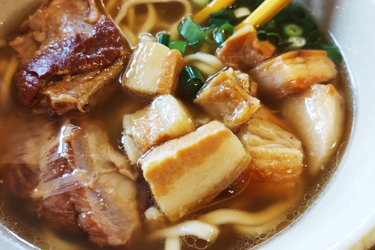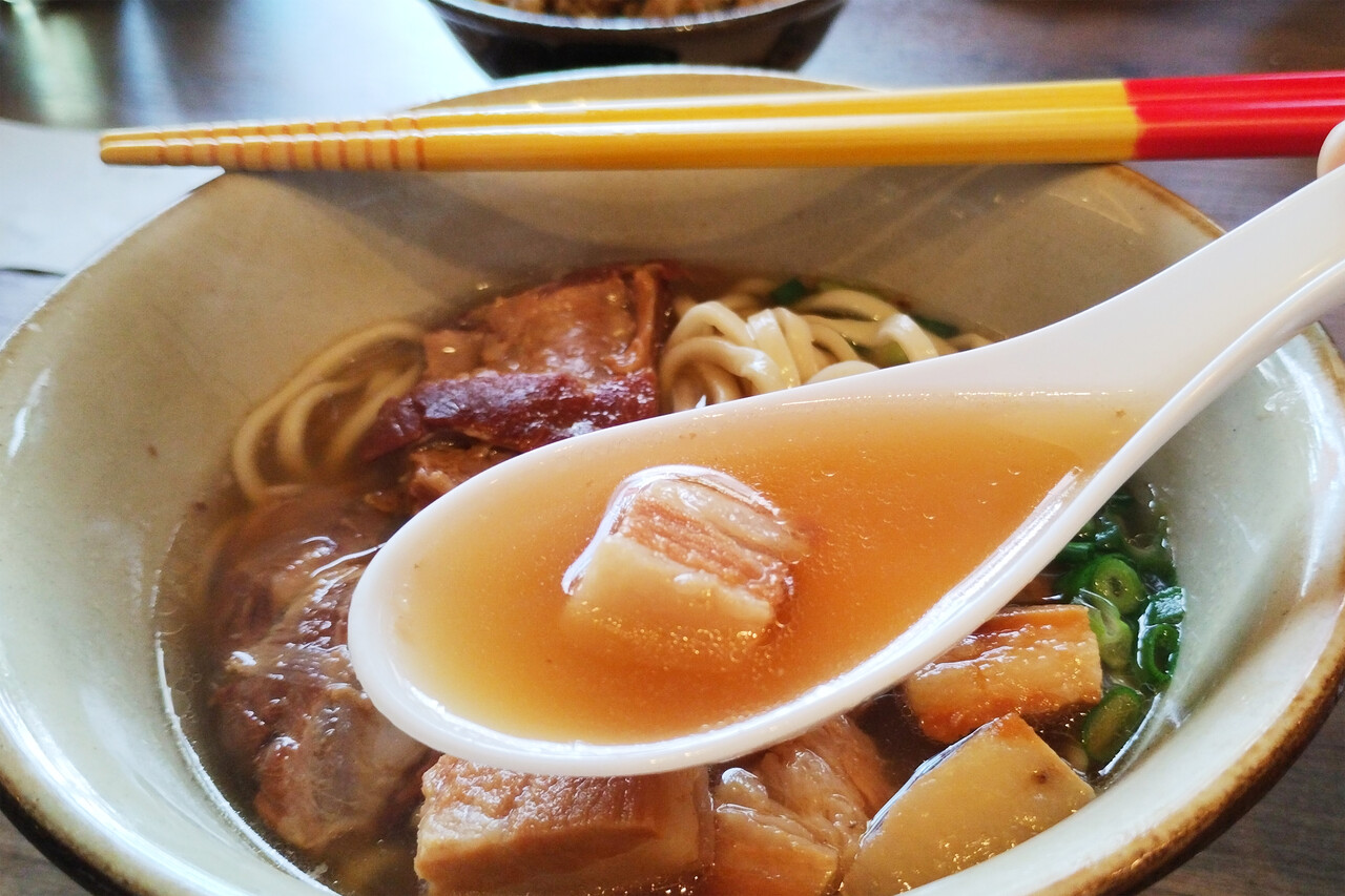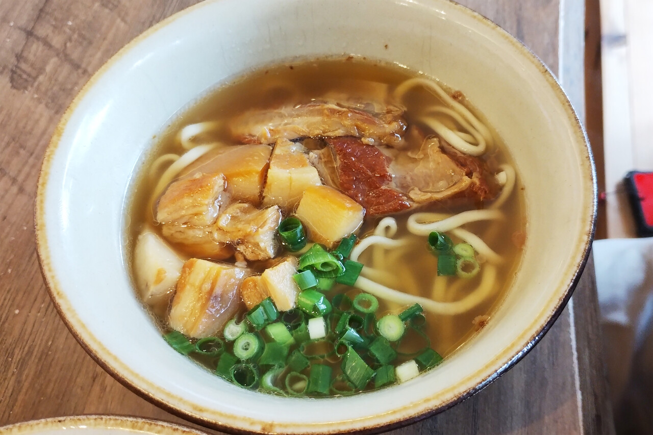 豚のソーキ(あばら肉)とラフティ(三枚肉)を柔らかく煮たものをトッピング。
