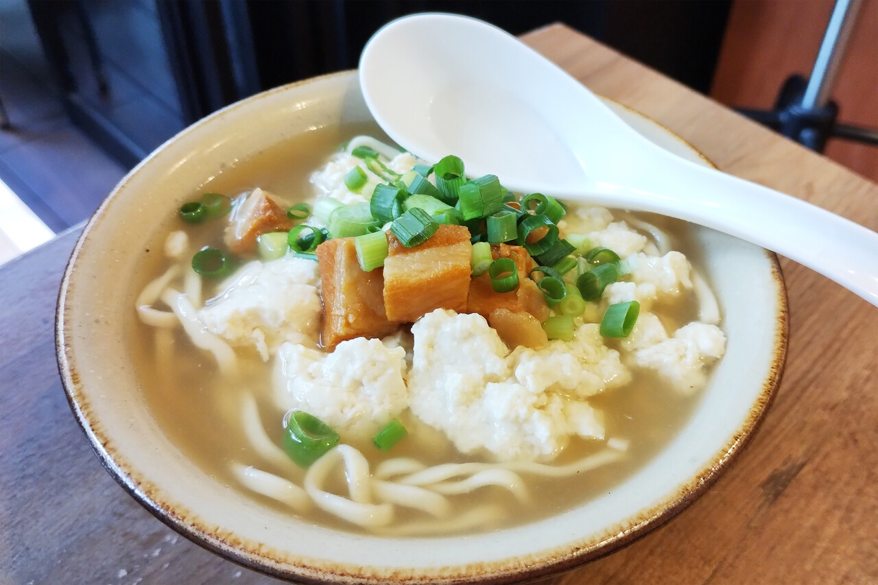 こちらは、沖縄の日常郷土食“ゆし豆腐”をトッピングした『ゆし豆腐そば』900円。