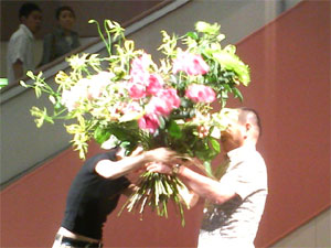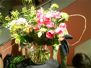 ちょうどフラワーデザイナーによるデモンストレーションの時間というコトで、しばし見学。近年、フラワー業界は、華道家 假屋崎省吾氏など露出大のお方が多くて華やかですね。
